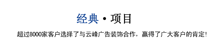 葫蘆島市云峰廣告裝飾有限公司自創(chuàng)立以來,一直致力于廣告牌的設(shè)計,噴繪,制作,安裝、LED工程、亮化工程、數(shù)碼圖文、圍擋制作安裝、三面翻廣告、大型擎天柱廣告、草坪牌、指示牌、雕刻背景墻、燈箱設(shè)計、標(biāo)識標(biāo)牌、金屬制品、亞克力字、展臺展柜、取款機隔斷、取款機隔斷等一體化服務(wù),是葫蘆島市噴繪行業(yè)大規(guī)模實業(yè)公司。